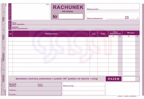 231-3 Rachunek dla zwolnionych podmiotowo z VAT 231-3