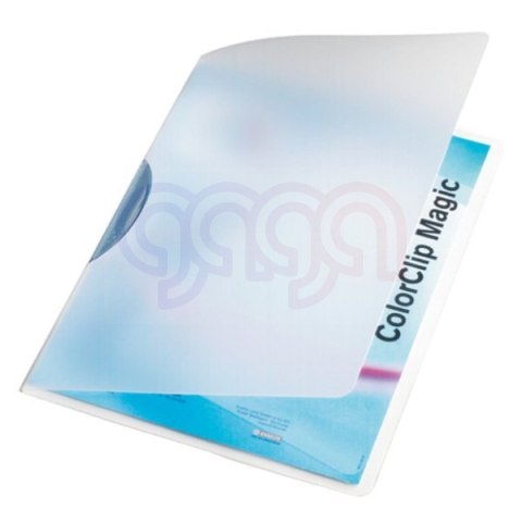 Elegancki skoroszyt do prezentacji ofert, dokumentów i projektów o formacie do A4. Zastosowanie innowacyjnego klipsa umożliwia przechowywanie dokumentów, których nie trzeba dziurkować. Wykonany ze sztywnego PP._Zalety:__ * Całkowicie otwierana przednia okładka umożliwia wygodne czytanie dokumentów_ * Przezroczyste okładki i kolorowy klips_ * Mieści do 30 kartek_ * Format A4