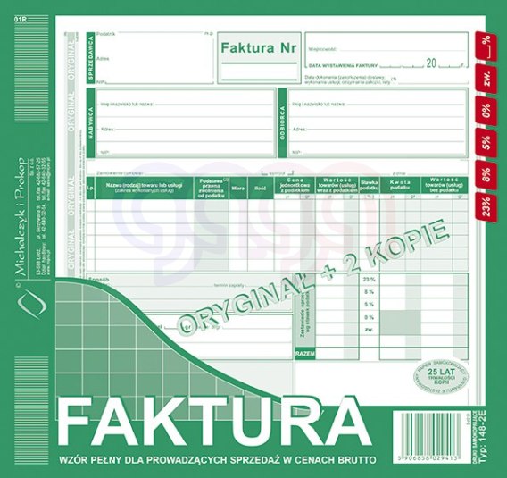 148-2E Faktura wzór pełny dla prowadzących sprzedaż w cenach brutto 148-2E