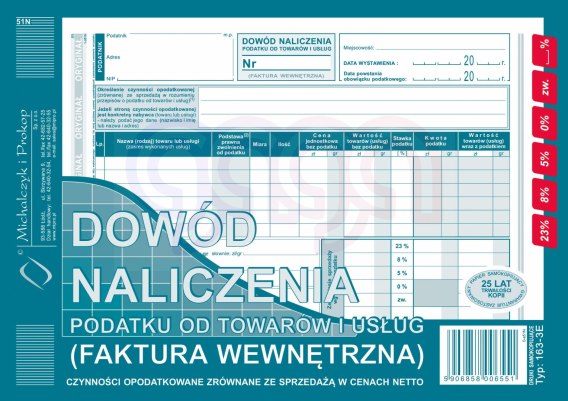 163-3E Dowód naliczenia podatku od towarów i usług (faktura wewn.) czynności opodatkowane zrównane ze sprzedażą w cenach netto 1