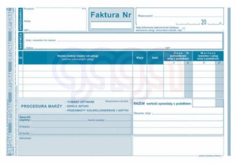 | Nazwa B2B | Faktura procedura marży towary używane, dzieła sztuki, przedmioty kolekcjonerskie i antyki, A5, (o+1k) MICHALCZYK I PROKOP |