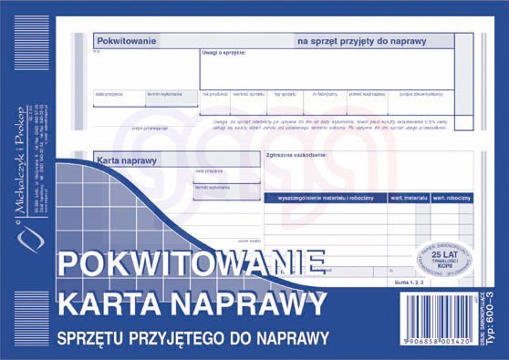 600-3 Pokwitowanie - kart naprawy sprzętu przyjętego do naprawy 600-3