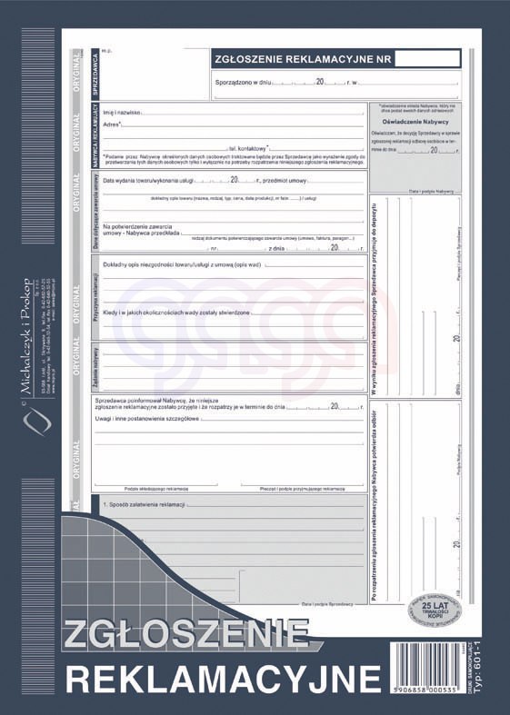 601-1 Zgłoszenie reklamacyjne 601-1