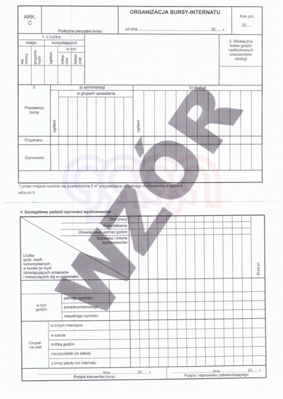 ARKUSZ ORGANIZACYJNY BURSY I INTERNATU