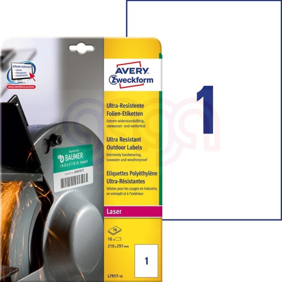 Etykiety Ultra Resistant L7917-10 210x297 10 ark polietylenowe, Avery Zweckform