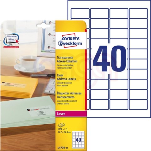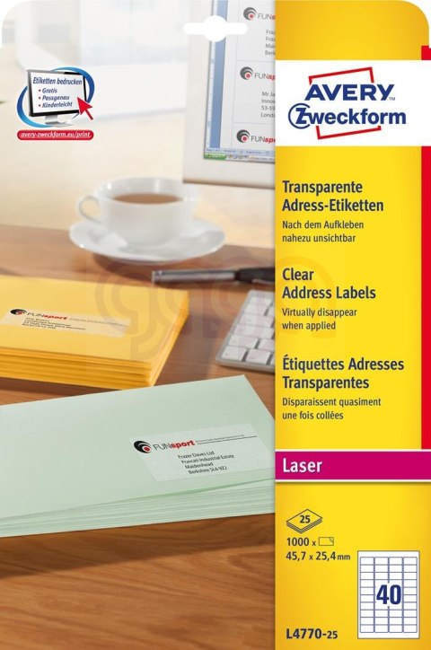 Etykiety adresowe L4770-25 45,7 x 25,4 25 ark. przezroczyste Avery Zweckform