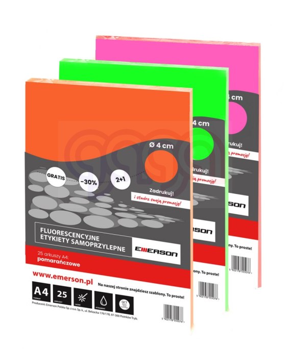 Etykiety fluorescencyjne firmy Emerson, to produkt z przeznaczeniem do tworzenia różnych promocji.