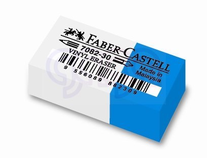 Gumka winylowa 7082-30 Faber-Castell dwukolorowa. Wykonana z tworzywa sztucznego. Zrównoważone połączenie tworzyw sztucznych powoduje, że wymazywanie nie zostawia smug. Wiele zastosowań: biała część odpowiednia do ołówków i kredek, niebieska część służy do tuszu/atramentu. Wymiary: 41 x 18,5 x 11,5 mm