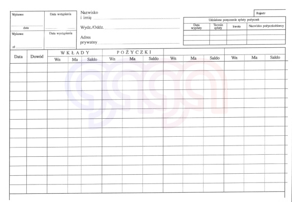 Dla każdego pracownika prowadzona jest jedna karta, w której rejestruje się wkłady i pożyczki oraz późniejsze ich spłaty.