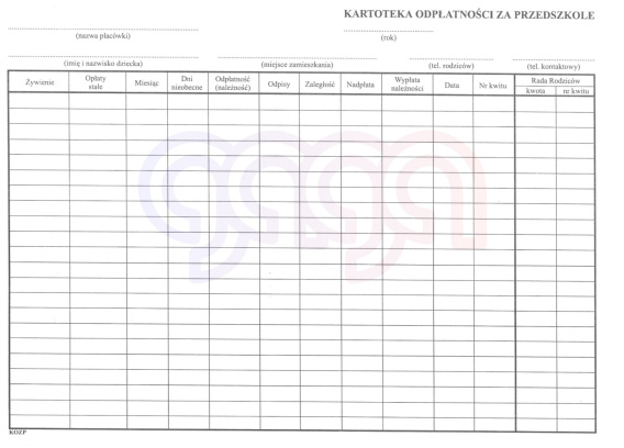 KARTOTEKA ODPŁATNOŚCI ZA PRZEDSZKOLE