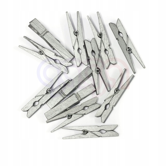Klamerki SPINACZE ozdobne drewno 47mm 12szt. SREBRNE 253036