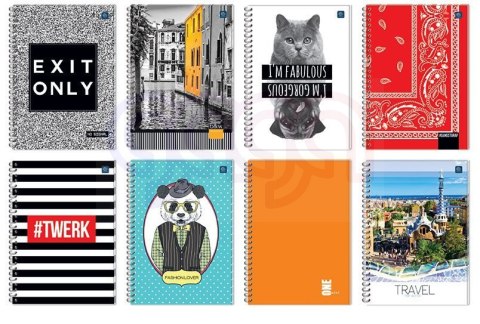 - zeszyt na spirali w twardej oprawie, okładka laminowana, spirala zamykana, kolorowy margines, mikroperforacja ułatwiająca wyrywanie kartek, otwory do segregatora umożliwiające wpięcie