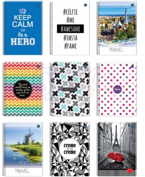 - zeszyt na spirali w miękkiej oprawie, spirala wkręcana,okładka lakierowana, mikroperforacja ułatwiająca wyrywanie kartek, otwory do segregatora umożliwiające wpięcie