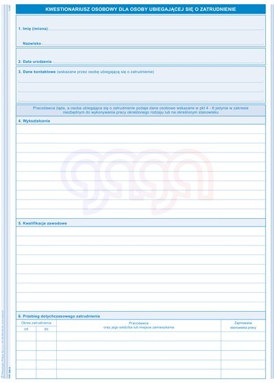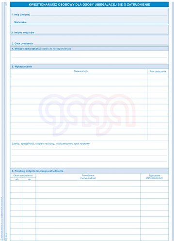 | zastosowanie: | druki kadrowe |