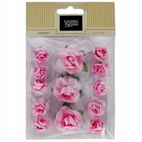 Kwiaty papierowe RÓŻE, jasnoróżowe ,13 szt. 252036