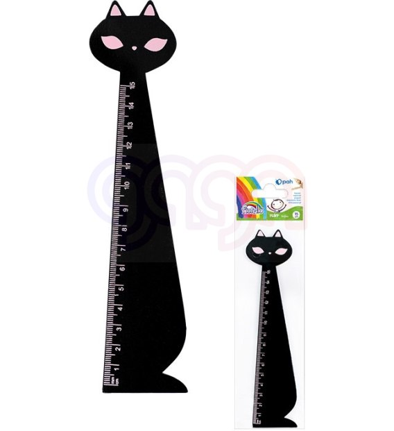 Linijka drewniana KOT czarny 15cm FIORELLO 130-1881