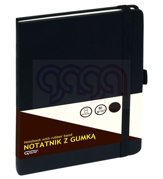 Notatnik GRAND z gumką A5/80 kartek, 80g/kratka, okładka czarna, 150-1381