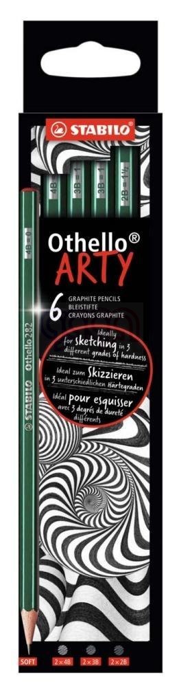 STABILO Othello ARTY to zestaw 6 szt. klasycznych ołówków STABILO o różnych twardościach -mix twardości (1 x 2B, 1 x B, 1 x HB, 1 x F, 1 x H, 1 x 2H). Ołówki przeznaczone dla artystów i artystów amatorów, dzieci w wieku szkolnym, studentów i wszystkich, którzy używają ołówka na co dzień. Produkt idealny do rysowania, pisania, szkicowania oraz cieniowania. Dla najbardziej wymagających użytkowników, jak i dla osób stawiających pierwsze kroki w rysowaniu. Zestaw zapakowany w papierowe etui.