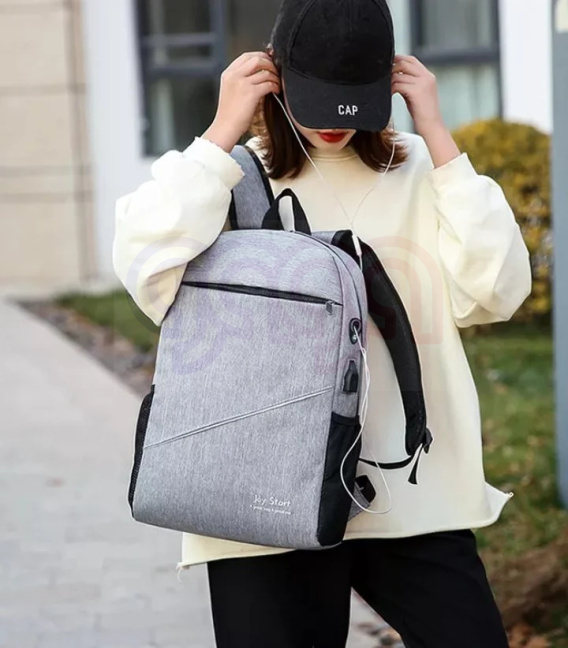 Plecak posiada wyjście na USB oraz otwór do podłączenie słuchawek przewodowych, dzięki temu możemy słuchać muzyki trzymając telefon w plecaku.