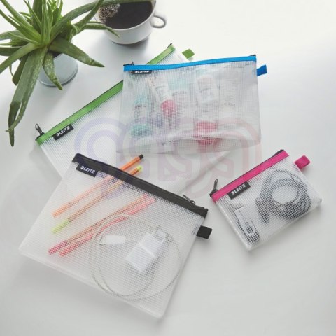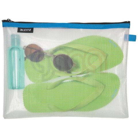 Element kolekcji Leitz WOW oferującej szeroki wybór stylowych produktów biurowych, zaprojektowanych w przykuwających wzrok stylowych kolorach, przeznaczonych dla osób pracujących w biurach lub często przemieszczających się_Praktyczny sposób porządkowania przedmiotów codziennego użytku w torebce, torbie na laptopa, plecaku szkolnym, bagażu podróżnym lub w samochodzie, jak również ochrony dokumentów przed zachlapaniem podczas rejsu łódką_Duża saszetka do porządkowania większych przedmiotów: 30 x 23 cm_Przezroczysty materiał pozwala na podgląd zawartości_Wykonana z nietoksycznego, wytrzymałego, wodoodpornego i nadającego się do prania materiału EVA_Mocny, lekko przesuwający się suwak_Różne wymiary i kolory ułatwiają porządkowanie rzeczy