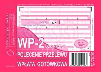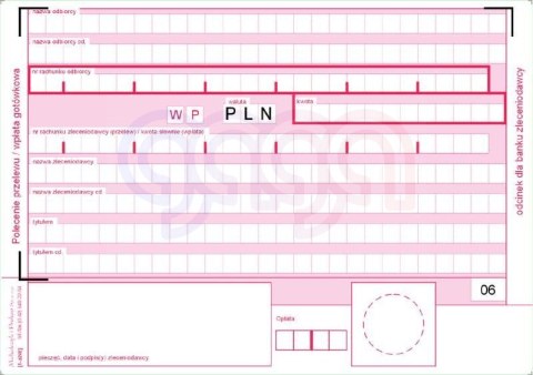 Bloczek poleceń przelewu (w dwóch egzemplarzach) w formacie A6, 80 kartek.