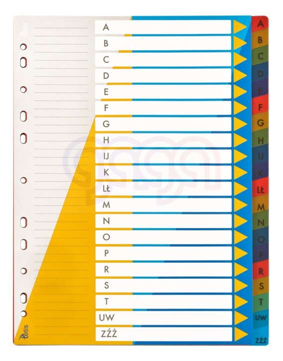 Przekładki PP alfabetyczne w formacie A4. Grubość: 0,14 mm