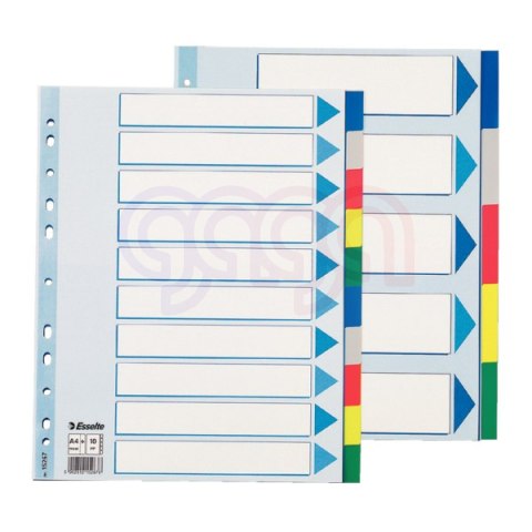 Przekładki A4 plastikowe PP Esselte_- numeryczne lub alfabetyczne_- multiperforowane - pasują do każdego segregatora_- z kartą informacyjno-opisową_- wymiar: 225 x 297 mm_- jednostka sprzedaży 1 komplet