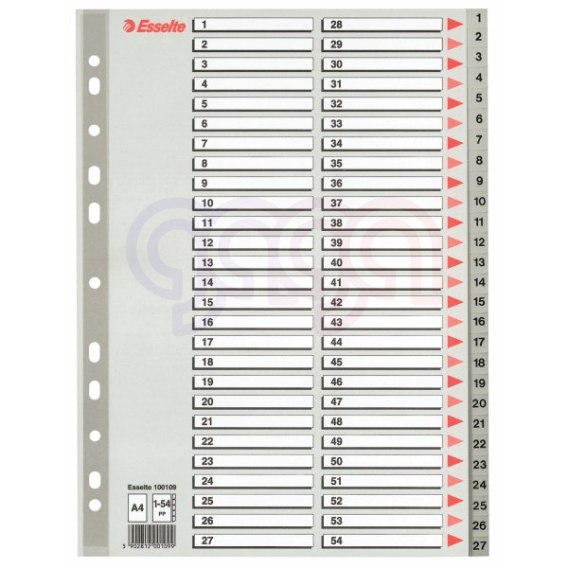 Przekładki plastikowe numeryczne A4 1-54 szare ESSELTE 100109