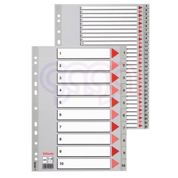 | Katalog_2021naz | Przekładki plastikowe szare PP A4 1-6 100104 numeryczne ESSELTE |