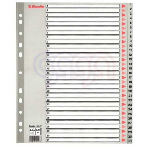 | Nazwa B2B | Przekładki plastikowe szare PP alfabetyczne A4 ESSELTE, 1-31 maxi |