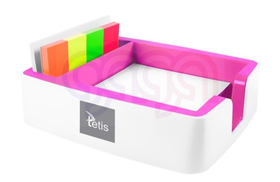 Wykonany z tworzywa sztucznego organizer. Antypoślizgowa podstawa. Pojemność wizytówek: 50 sztuk. Pojemność karteczek: 200 sztuk. Maksymalny rozmiar karteczek: 90x90 mm