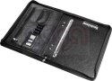 - wyposażona w kieszeń przestrzenną, kieszeń zamykaną na suwak, 2 kieszonki na wizytówki, kieszeń z okienkiem na wizytowniki, miejsce na długopis, ring 4R do wpinania, klip do utrzymywania notesu lub notatek