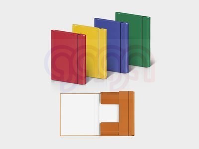 _wykonana z twardej tektury o grubości 2 mm__kolorowa oklejka, pokryta folią polipropylenową__wyklejka papierowa__do formatu A4__szerokość do 40mm__zamykana na gumkę