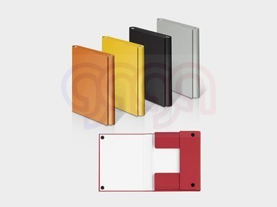 _wykonana z twardej tektury o grubości 2 mm__kolorowa oklejka, pokryta folią polipropylenową__wyklejka papierowa__do formatu A4 lub A5__szerokość grzbietu do 40mm__zamykana na 2 rzepy