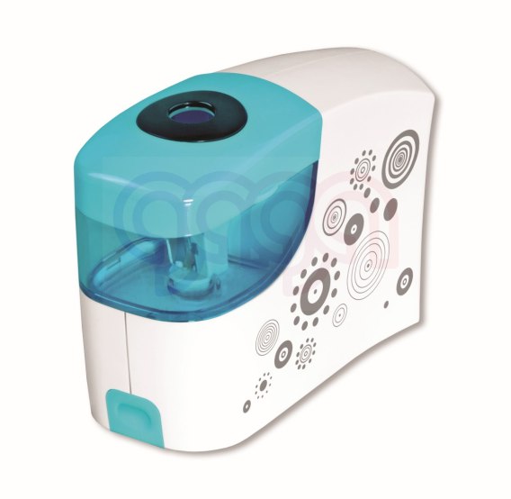 Automatyczna temperówka na baterie typu AA (4 sztuki, nie dołączone do opakowania) wyposażona w dwa wymienne mechanizmy ostrzenia z otworami różnej średnicy (11mm, 8mm). Posiada wyjmowany Pojemnik na ścinki oraz antypoślizgowy spód. Możliwość użycia bez baterii.