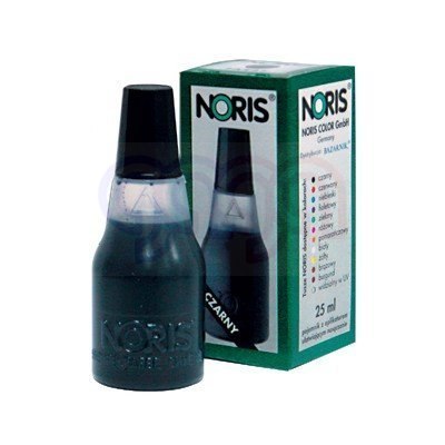 Uniwersalny tusz wodny Noris 110S _- do stempli ręcznych i samotuszujących, z gumową i polimerową płytką stemplującą. - Dostępny w kolorach: czarnym, czerwonym, niebieskim, zielonym i fioletowym. - Buteleczka 25 ml z końcówką ułatwiającą nasączenie poduszek oraz nakrętką w kolorze tuszu.- jednostka sprzedaży 1 sztuka