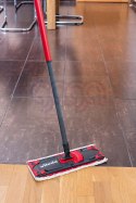 Białe włókna wkładu zapewniają czystość bez smug i zarysowań nawet najdelikatniejszych powierzchni. Czerwone włókna wkładu Ultramax doskonale radzą sobie z uporczywym brudem i drobinami bez konieczności stosowania detergentów. Mop płaski Vileda posiada przycisk na padzie, który umożliwia szybkie złożenie mopa, poprzez kliknięcie stopą, w celu wypłukania wkładu w wiadrze. Wkład jest mocowany do pada za pomocą czterech klipsów, które umożliwiają łatwe zdjęcie lub wymianę. Nakładka mopa Ultramax o wymiarach 35 x 14 cm przeznaczona jest również do mycia podłóg drewnianych. Mop do podłóg Vileda posiada drążek teleskopowy, który umożliwia regulację długości kija w zależności do potrzeb.