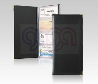 Wizytowniki zawierają 12 wysokoprzezroczystych koszulek trwale przymocowanych do grzbietu okładki, pozwalających na włożenie 96 szt. wizytówek. Produkowane w kolorze czarnym.
