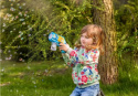 by rozpocząć zabawę, umieść w wyrzutni dołączoną do zestawu buteleczkę z płynem, zasil zabawkę bateriami i naciśnij na spust, a z lufy wystrzeli nieprzerwany strumień baniek! Z wyrzutni należy korzystać na świeżym powietrzu.