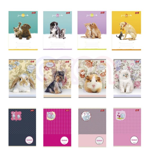 Zeszyt A5 16k 3linia dwukol.L mix dziewczęcy laminowany UNIPAP *6939