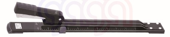 Zszywacz długoramienny metalowy. Zszywanie zamknięte i otwarte. Dodatkowo wyposażony w skalę centymetrową oraz calową. Dostosowany do zszywek o rozmiarach 24-6 - 26/6 mm. Zszywa do 25 kartek. Głębokość wsuwania kartek: 310 mm.