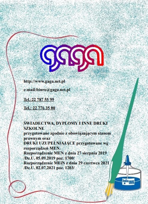Serdecznie zachęcamy do zapoznania się z naszą ofertą, dotyczącą ŚWIADECTW, DYPLOMÓW I INNYCH DRUKÓW SZKOLNYCH, przygotowanych zgodnie z obowiązującym stanem prawnym oraz DRUKÓW UZUPEŁNIAJĄCYCH, przygotowanych wg rozporządzeń MEN.